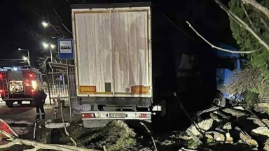 Пиян шофьор на тир, пълен с арматурно желязо, се заби в офис в Каспичан