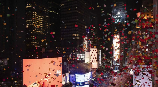 Новата година настъпи под радостните възгласи на десетки хиляди хора със сияещи лица на нюйоркския площад "Таймс Скуеър", които бяха обсипани с конфети, прегръдки и целувки, след като наблюдаваха спускането на многоцветното кристално кълбо, отбелязващо настъпването на 2024 г., съобщи Асошиейтед пре