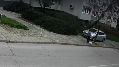 Кола се размина с пешеходка на тротоар в Хасково (видео)