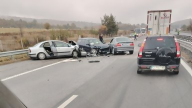 Верижна катастрофа блокира АМ "Тракия" край Вакарел (видео)