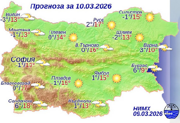 Температури до 17 градуса утре в Русе
