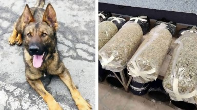 Граничарското куче Бояр хвана над 70 кг марихуана на ГКПП „Малко Търново“ (снимки)
