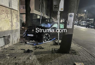 На разсъмване! Кола се заби в къща в Благоевград, страшен тътен събуди стопаните /Снимки/