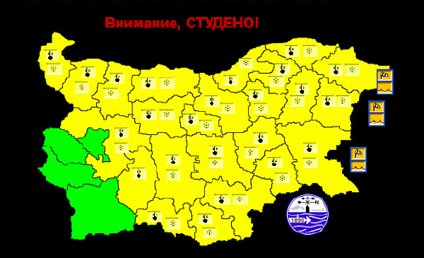Жълт код за много студено време за утре за почти цялата страна