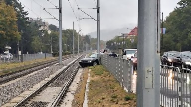 Шофьор вкара колата си на трамвайните релси на столичния бул. "Цар Борис III"
