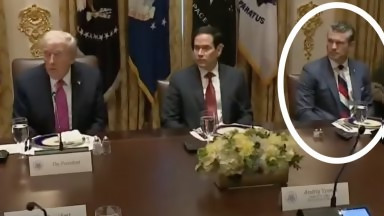 Пийт Хегсет се появи на срещата със Зеленски с вратовръзка в цветовете на руския флаг