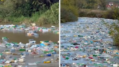 Хиляди пластмасови отпадъци задръстиха река Вардар в Северна Македония (видео)