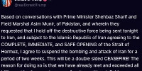 След намеса на Пакистан в последния момент Тръмп отмени удара, Иран отваря Ормузкия проток