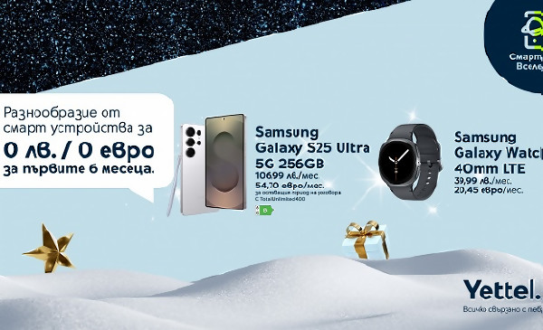 Коледна оферта от Yettel: 6 месеца 0 лв. лизингова вноска за премиум смарт устройства