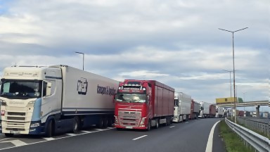 На българска територия тировете изчакват в аварийната лента на автомагистрала "Струма" и на паркингите около граничния пункт "Кулата"