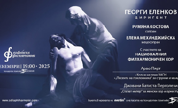 На 14 декември Софийската филхармония и Националният филхармоничен хор, под диригентството на Георги Еленков, представят концерт, който свързва три епохи и трима музикални гения. Програмата:„Колаж на тема BACH" на Арво Пярт - естонския майстор на духовния минимализъм, който този декември отбелязва 90-годишен юбилей. „Stabat Mater" на Джовани Батиста Перголези - една от най-вълнуващите барокови интерпретации на текста за страданията на Богородица, написана малко преди ранната смърт на композитора през 1736 г. „Песента на поклонника" на Арво Пярт - съзерцателна звукова молитва, в която времето сякаш спира. Вечер, в която Бах присъства като невидим вдъхновител, а музиката надхвърля векове и стилове.Арво Пярт - тишината, която звучи Арво Пярт е роден на 11 септември 1935 г. в малкото естонско градче Пайде, но музиката му отдавна е надскочила географските и времевите граници. Той е създател на уникалния стил tintinnabuli (от латински "малки звънчета") - музикален език, в който всеки тон е наситен със смисъл, а паузите между нотите носят същата тежест, както и самият звук. В младостта си Пярт преминава през сериозни търсения - от експерименти с модернистични техники, през творческа пауза, до дълбоко обръщане към духовността и простотата на израза. Резултатът е музика, в която слушателят не просто чува, а съзерцава