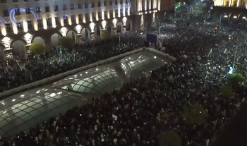 "Дневник" излъчва на живо кадрите на "Ройтерс" от огромния антиправителствен протест в центъра на София.