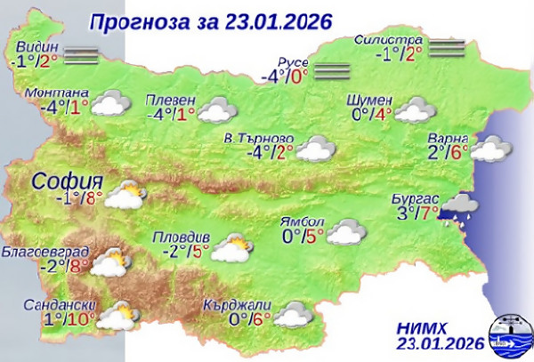 Времето днес, петък, 23 януари