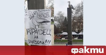 "Внимание, гларуса, редовно сядащ тук, краде закуските от ръцете на хората", гласи предупредителната табела, залепен на стълб в центъра на Бургас. На същия лист има и скица на гларуса като извадена от полицейска хроника. На друг лист пък е написано с големи букви "Крадец на закуски!".