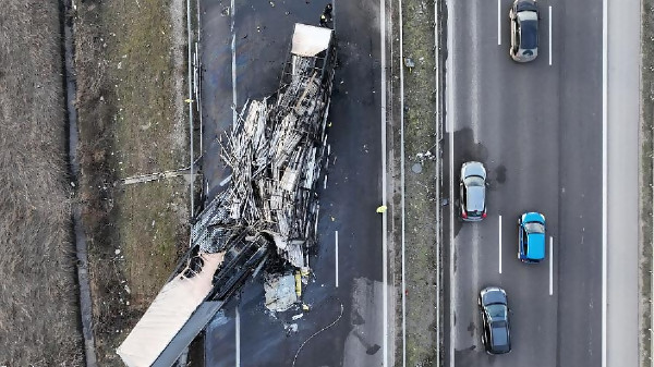 Катастрофа между два тира с пожар затвори Северната скоростна тангента (видео/снимки)