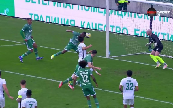 След изпълнение на пряк свободен удар от страна на Петър Станич в наказателното поле, Идан Нахмиас се размина с нея, но все пак Бърнард Текпетей успя да засече от непосредствена близост с глава. Вратарят Жауме Валенс обаче реагира блестящо и с една ръка успя да избие кълбото точно пред голлинията....
