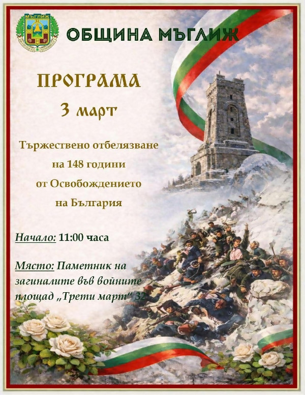 С празнична програма ще отбележат 3 март в Мъглиж
