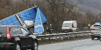 ТИР се обърна на АМ "Тракия"! Движението е блокирано