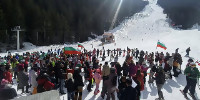 Български знамена и хора в Ски зона Банско за 3 март