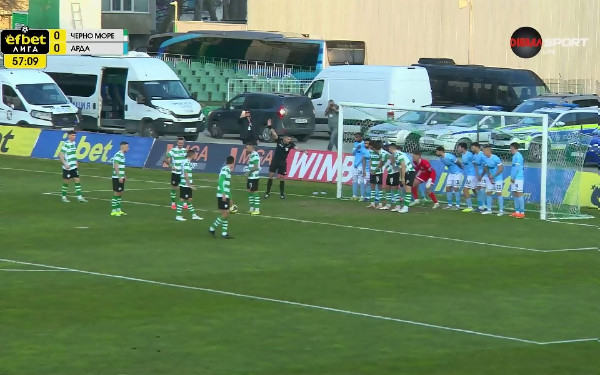 Куриоз във Варна! Непряк свободен удар на сантиметри от вратата не доведе до гол (видео)