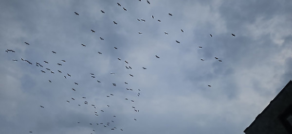 Ескадрила щъркели в небето над Бургас