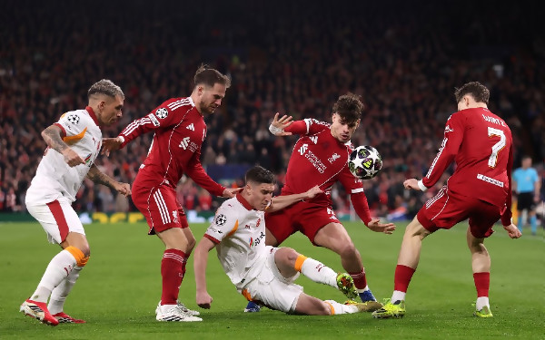Ливърпул разби с 4:0 Галатасарай на "Анфийлд" и с общ резултат 4:1 елиминира турския шампион, взе реванш за двете поредни загуби в Истанбул и се класира за 1/4-финалите на Шампионската лига. Там мърсисайдци ще срещнат актуалния носител на отличието Пари Сен Жермен, от който отпаднаха през миналия сезон на 1/8-финалната фаза след изпълнение на дузпи. Тази вечер тимът на Арне Слот бе пълен доминант и головете на Доминик Собослай (25'), Юго Екитике (51'), Райън Гравенберх (53') и Мохамед Салах (62') бяха най-малкото, с което Галатасарай се размина. Салах пропусна дузпа и удари греда. Последното лиши и Мак Алистър от попадение. Автогол на Синго пък бе отменен заради засада на Фримпонг. В края попадение на домакините бе отменено заради спорно нарушение. При всички случаи обаче феновете на Ливърпул този път останаха напълно доволни от продукцията на техните любимци.