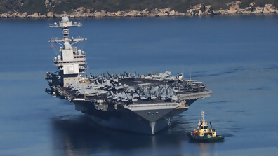 Самолетоносачът "Джералд Форд" акостира във военноморската база "Суда" на Крит