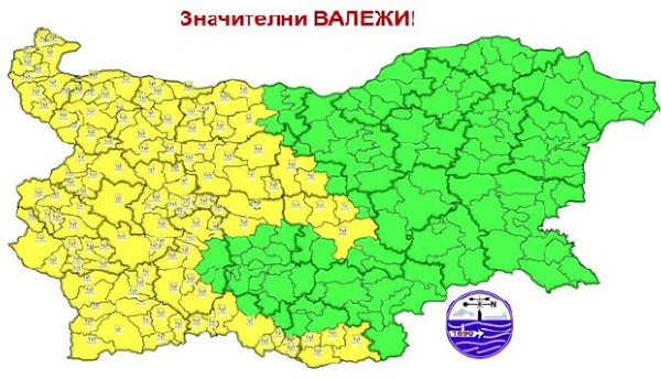 Жълт код за значителни валежи в 16 области у нас в петък, 27 март