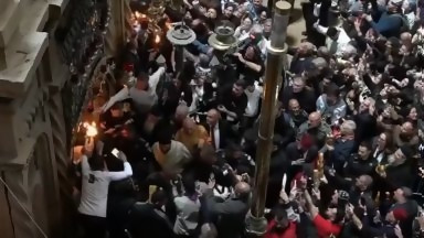 Благодатният огън слезе на Божи гроб в Йерусалим (видео)