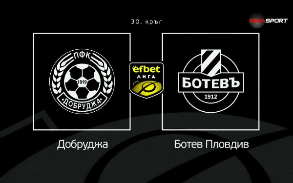Добруджа приема Ботев Пловдив в двубой от последния 30-ти кръг на редовния сезон в efbet Лига. Срещата на стадион „Дружба“ в Добрич стартира в 20:30 часа и може да я гледате пряко по DIEMA SPORT, както и онлайн на платформата PLAY DIEMA XTRA. На сайта Gong.bg ще проследим двубоя на живо с видеосъдържание. Главен съдия н...