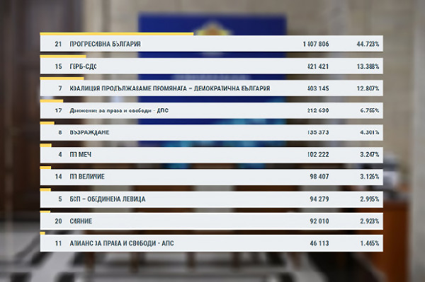 Последни данни: "Прогресивна България" печели изборите с 44.72%