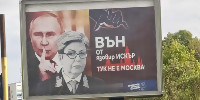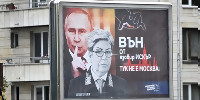 Билборд срещу руското посолство в София с Путин и Митрофанова