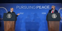 Изгониха двама депутати от израелския парламент по време на речта на Тръмп (видео)