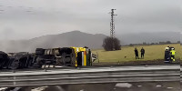 Обърна се камион, разпилян е опасен товар!