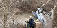 Пожарникарите рязали колата и дървета, за да извадят пострадалите от реката