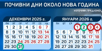 От днес започват празничните и почивни дни около Коледа и Нова година. "Празничните дни са ясно посочени в член…