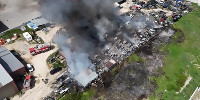 Голям пожар избухна в автоморга в Индустриалната зона на Пловдив (СНИМКИ/ВИДЕО)